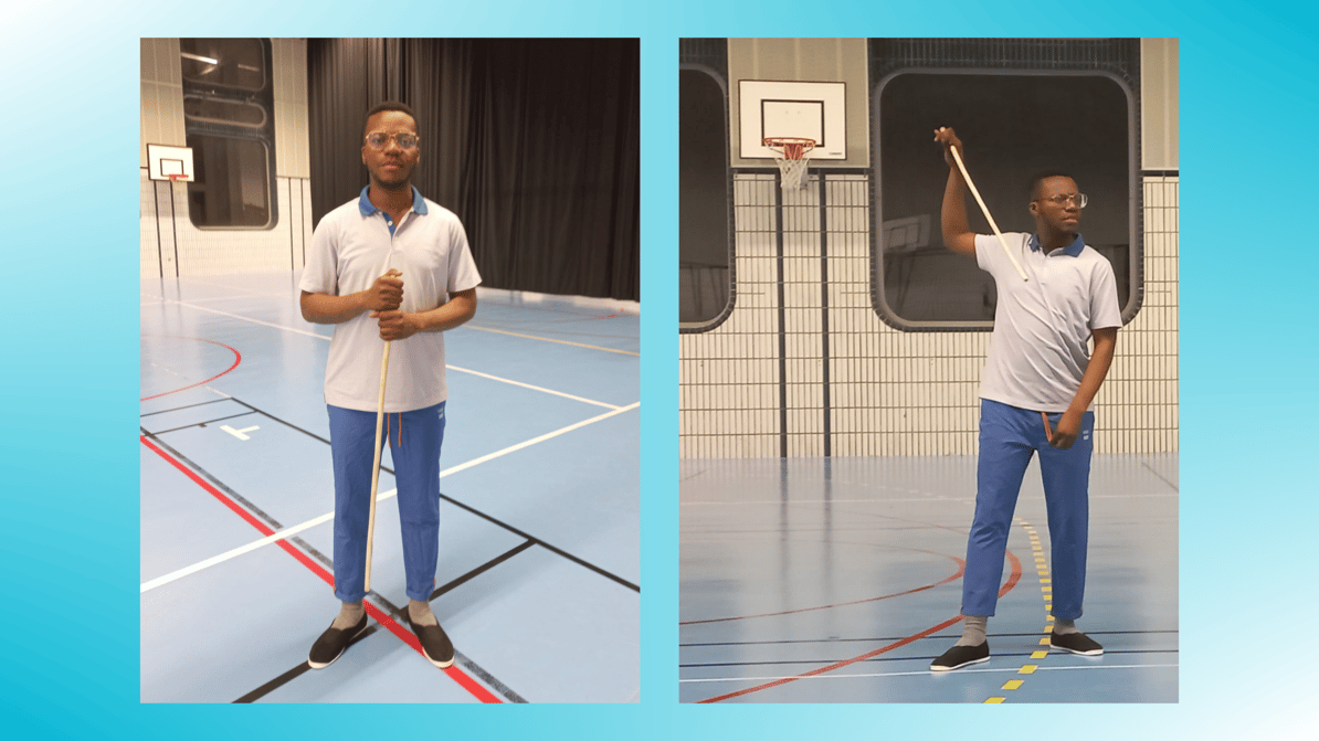 Tu armes, tu lances ton coup. Tu essayes de toucher ton adversaire, en tendant bien le bras, la canne le prolongeant. Simple… ? Attention ! On est pas en escrime ici 🚫🤺