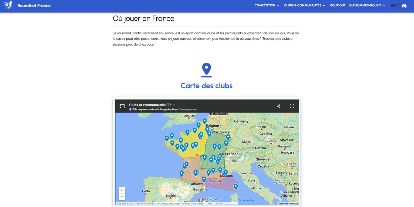Je suis tenté de dire qu’ils n’ont pas tort : il existe aujourd’hui plus d’une trentaine de clubs dans toute la France 🇫🇷. Ils sont tous à retrouver sur la carte de la fédé à l’adresse suivante : roundnetfrance.fr/clubs-et-communautes/liste-des-clubs